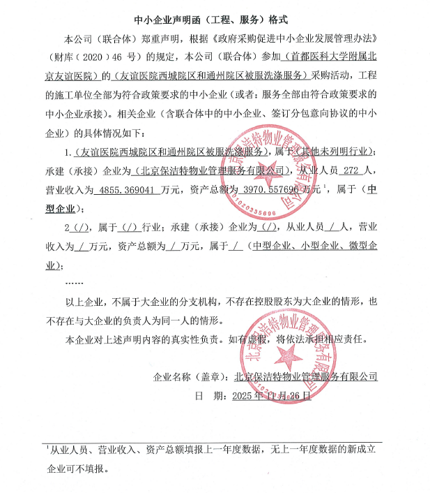 [公开]友谊医院西城院区和通州院区被服洗涤服务中标公告