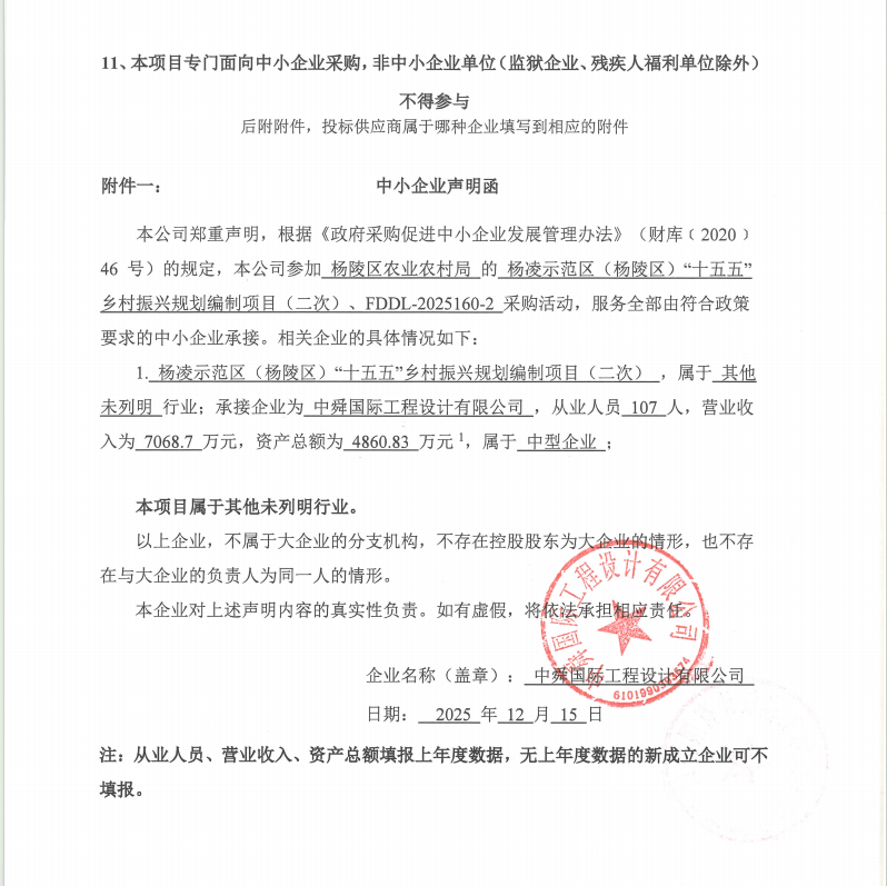 ******农村局杨凌示范区(杨陵区)“十五五”乡村振兴规划编制项目(二次)中标(成交)明细.pdf 中小企业声明函.png 二次报价表.pdf 定 杨凌示范区(杨陵区)“十五五”乡村振兴规划编制项目(二次) 磋商文件.doc