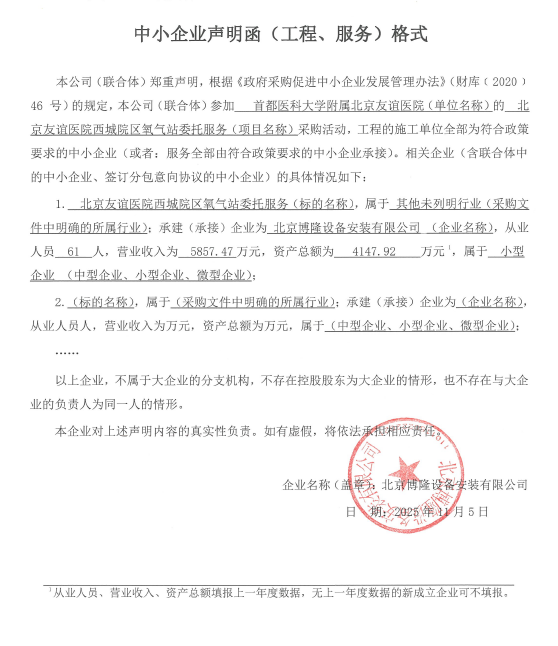 [公开]北京友谊医院西城院区氧气站委托服务中标公告