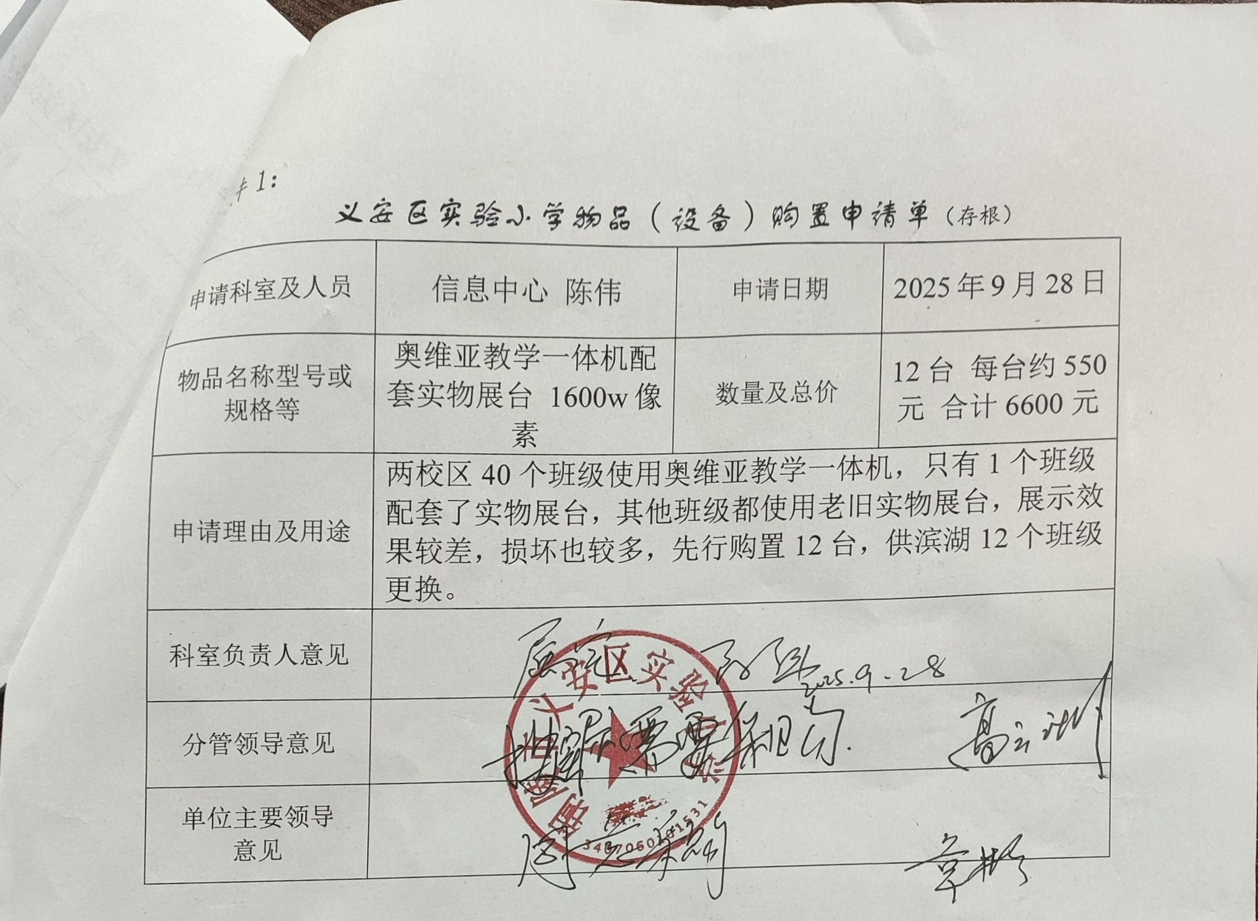 商品名称 参数要求 购买数量 控制金额(元) 建议品牌 高拍仪 核心参数要求:商品类目: 高拍仪; 颜色分类:黑色;型号:VB301Q;次要参数要求: 12台 6600.00 奥威亚 ******学校12台奥威亚教学一体机使用,要求采购奥威亚教学一体机厂家配套实物展台,经线下调查后选择1600w像素款式。中标商家必须提供奥威亚厂家正******小学滨湖校区,并在201-206、401-406班安装上墙,12个班分别在1-4楼。上述服务和要求包含在总价里,不另外付费。