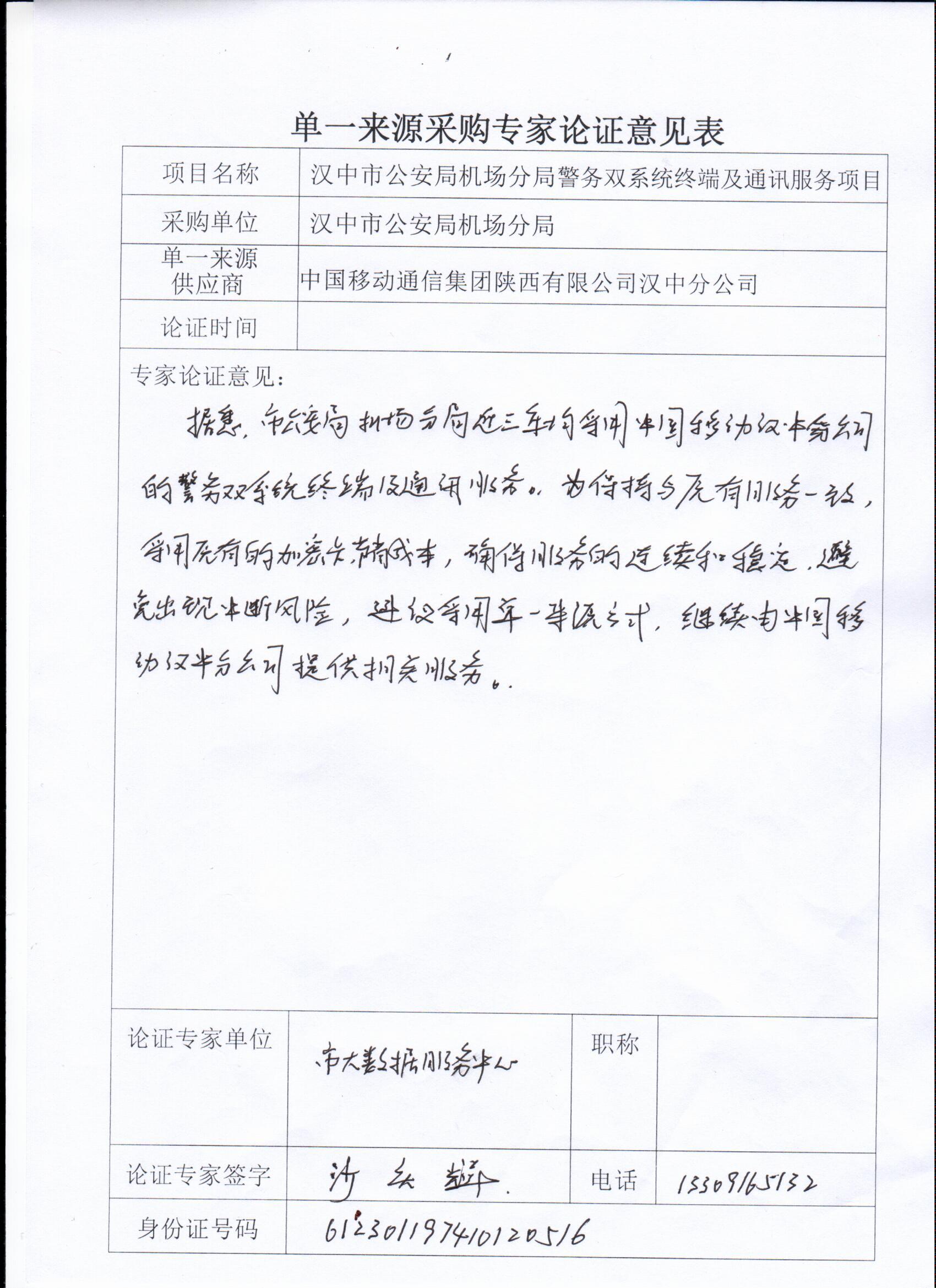 汉中市公安局机场分局汉中市公安局机场分局警务通终端网络通讯服务租赁采购实行单一来源采购方式的公示