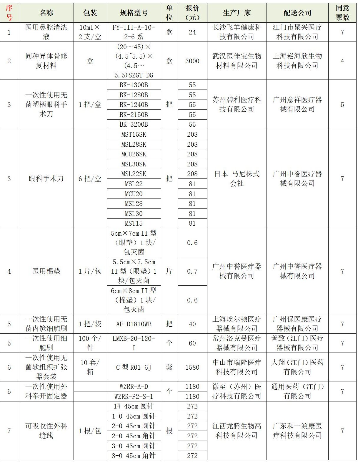 ??? 项目编号医用耗材:HC******最终拟确定得票数过半的公司为候选公司(选送品种),遴选结果如下:
