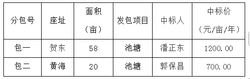 射阳县振洋水产养殖服务有限公司资源发包项目中标结果公示