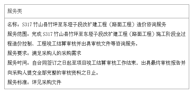 二、项目名称:S317竹山县竹坪至东垭子段改扩建工程(路面工程)造价咨询服务