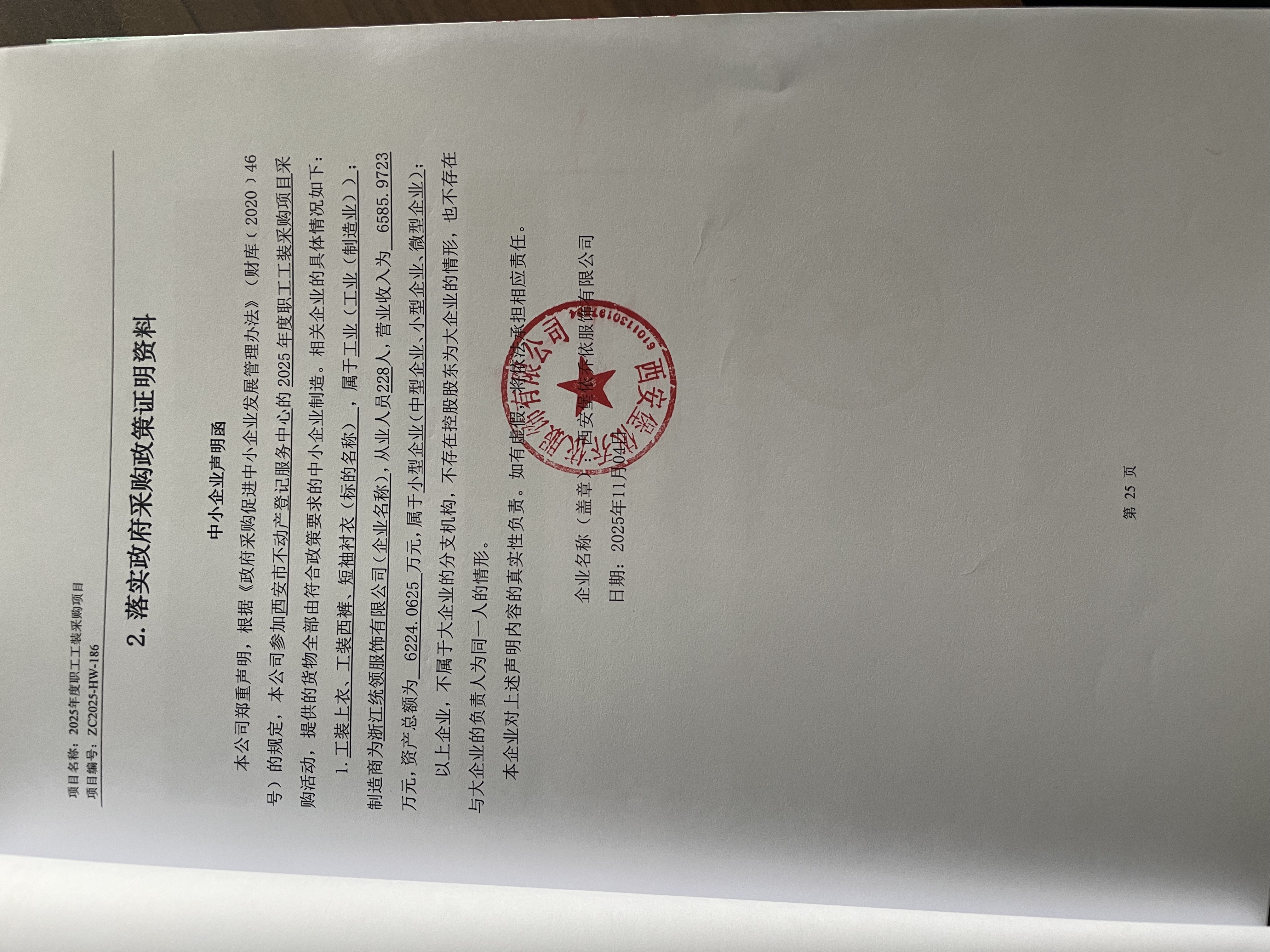 ******服务中心2025年度职工工装采购项目中标(成交)明细.pdf 【磋商文件10.21】2025年度职工工装采购项目.docx 服装--二次报价表.jpg 服装--中小企业声明函.jpg
