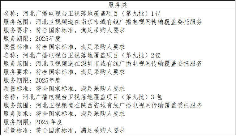 河北广播电视台卫视落地覆盖项目(第九批)成交结果公告