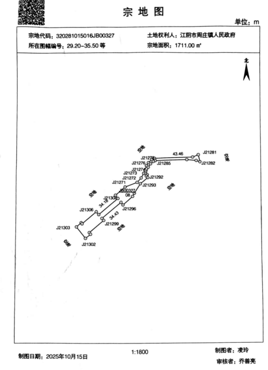 以周庄镇烈士陵园宗地图(宗地代码:******506JB00327,所在图幅号:29.2035.50等)为
