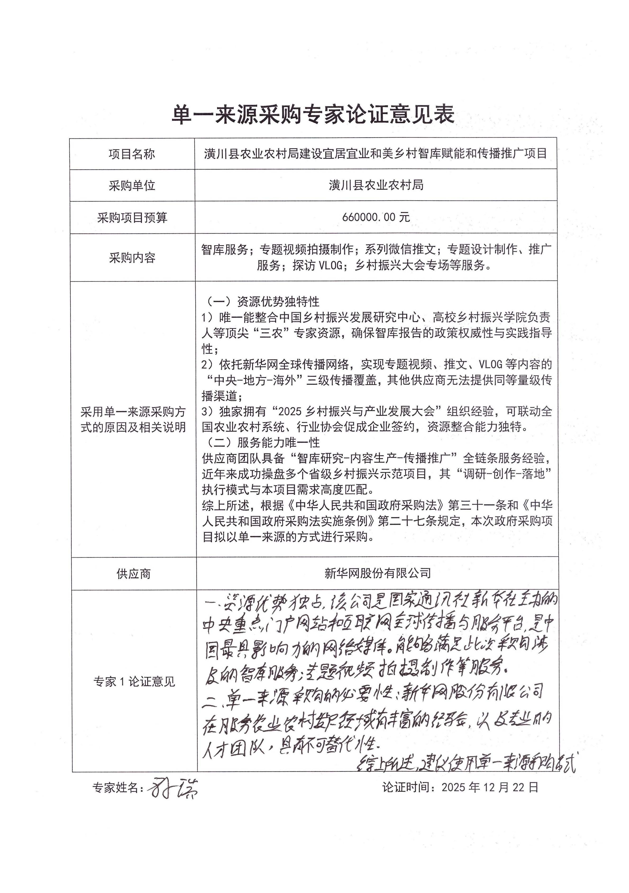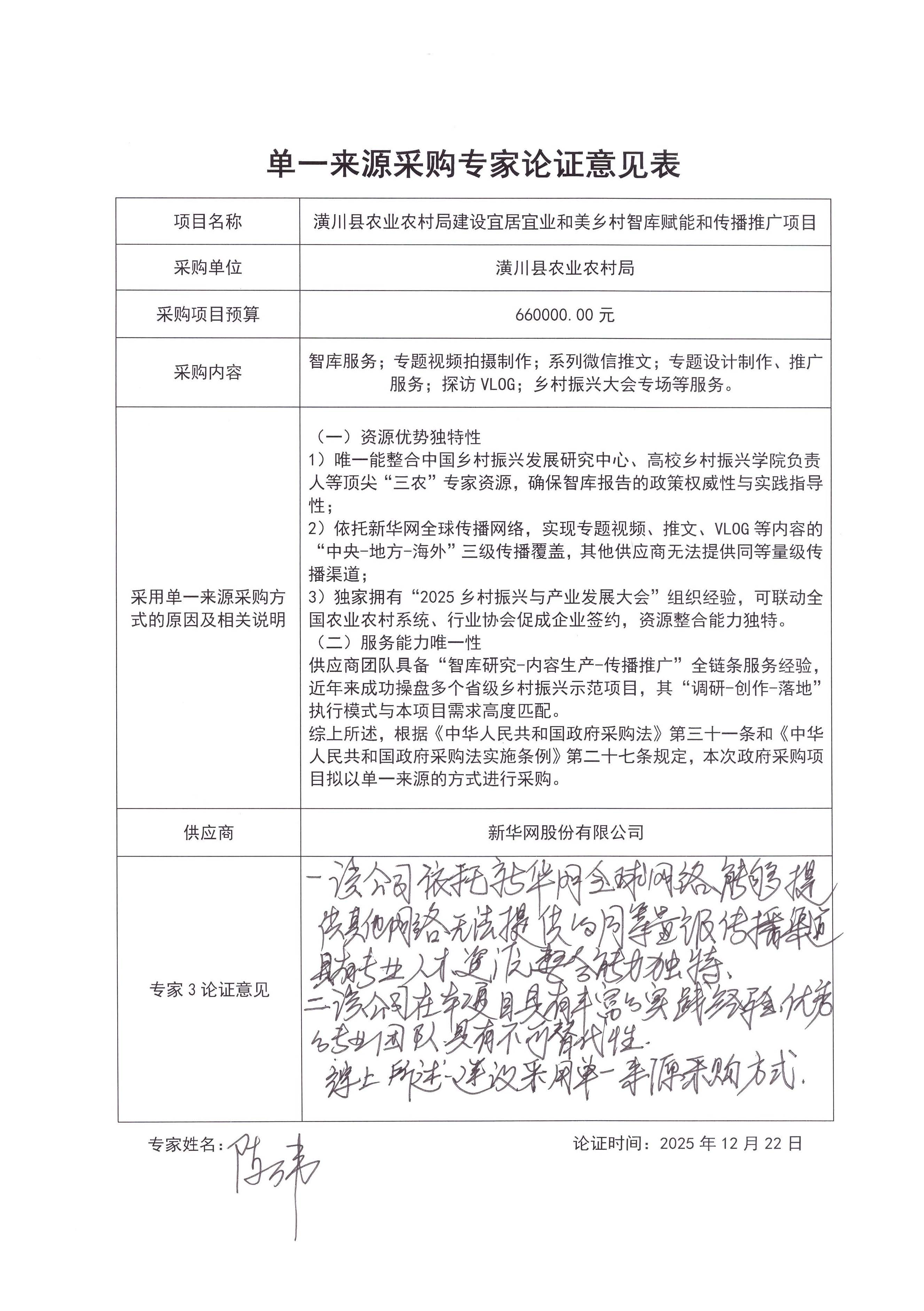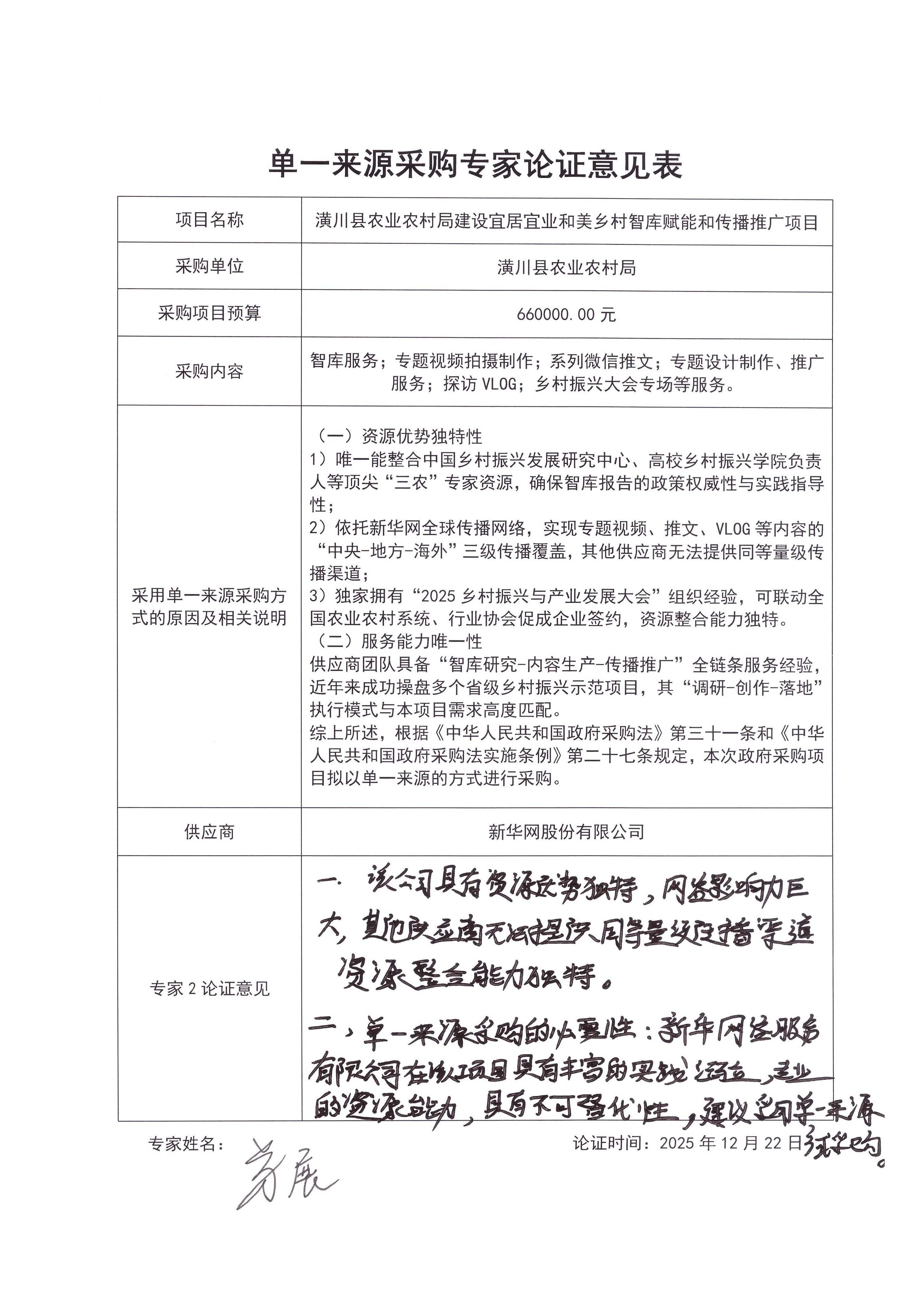 潢川县农业农村局建设宜居宜业和美乡村智库赋能和传播推广项目采用单一来源方式采购论证公示
