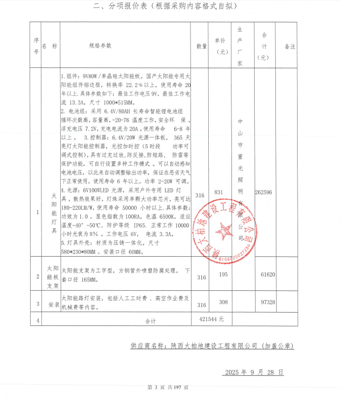 合同包1(榆麻路(产业五路至麻黄梁工业园区)太阳能路灯改造项目):
