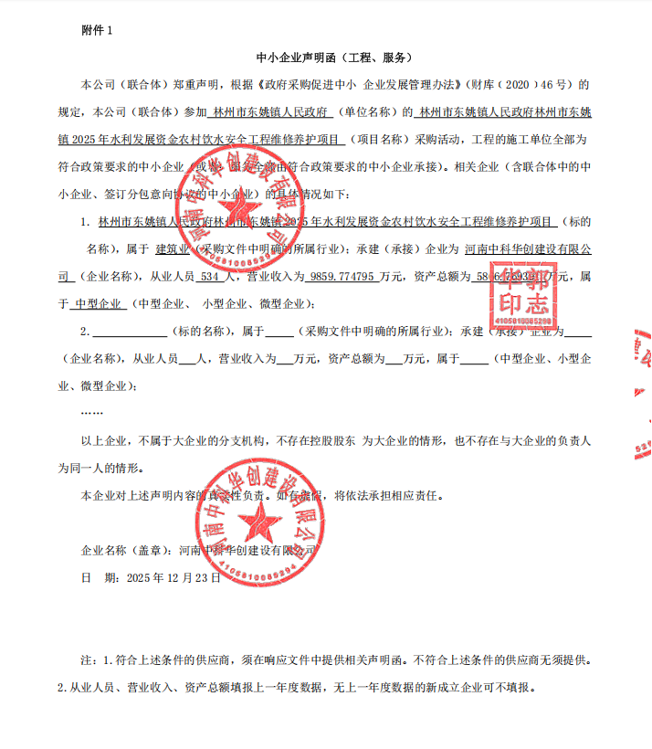 林州市东姚镇人民政府林州市东姚镇2025年水利发展资金农村饮水安全工程维修养护项目-成交公告